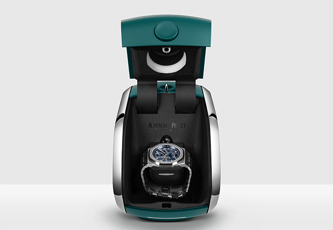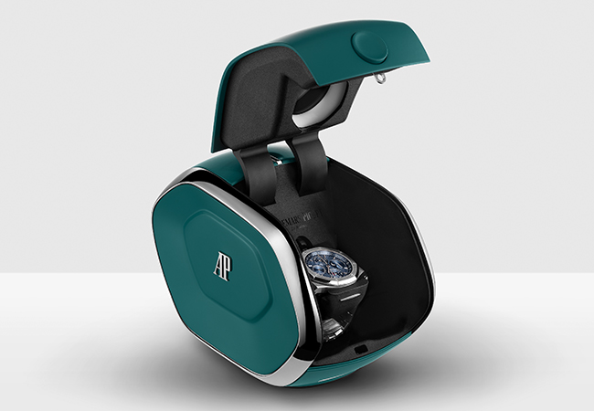 Audemars-Piguet, la maison horlogère passionnée par le quantième perpétuel fait face à cette situation depuis longtemps et est en constante recherche de solutions simples pour faciliter la vie de ses collectionneurs. Déjà cette année, elle avait présenté les calibres (ou mouvements) 7136 et 7138 permettant de régler précisément le mécanisme avec le « tout à la couronne », mais c’est en partenariat avec la Dubaï Future Foundation qu’ils ont dévoilé un écrin de montre, capable de régler automatiquement les dernières Royal Oak Quantième Perpétuel de 41mm.