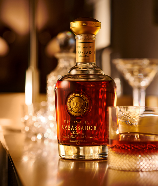 Enfin l’Ambassadeur, identifiable à sa robe ambrée, profonde et lumineuse, mêle avec délicatesse ses notes de Porto, de cigare, de fruits secs et de chocolat quand son intensité exceptionnelle frappe à la dégustation mettant en avant le raisin et le bois fumé.